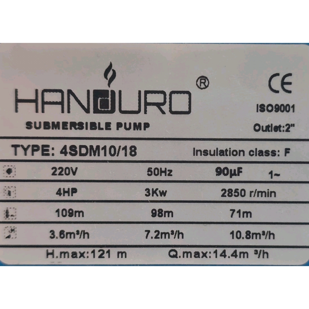 شناور کامل الین ۱۱۲ متری ۲ اینچ آبدهی بالا استیل ۴ اسب تکفاز مدل 4SDM-10/18 | پمپ ارتفاع بالا تک فاز ۳ کیلووات ( ۱۱۰ متری )