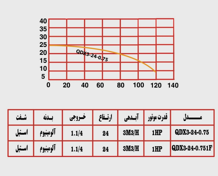 کفکش سی ان بی ۲۴ متری ۱/۴_۱ اینچ تکفاز بدون فلوتر CNB QDX3-24-0/75-1.1/4 | پمپ کف کش یک و یک چهارم اینچ تک فاز