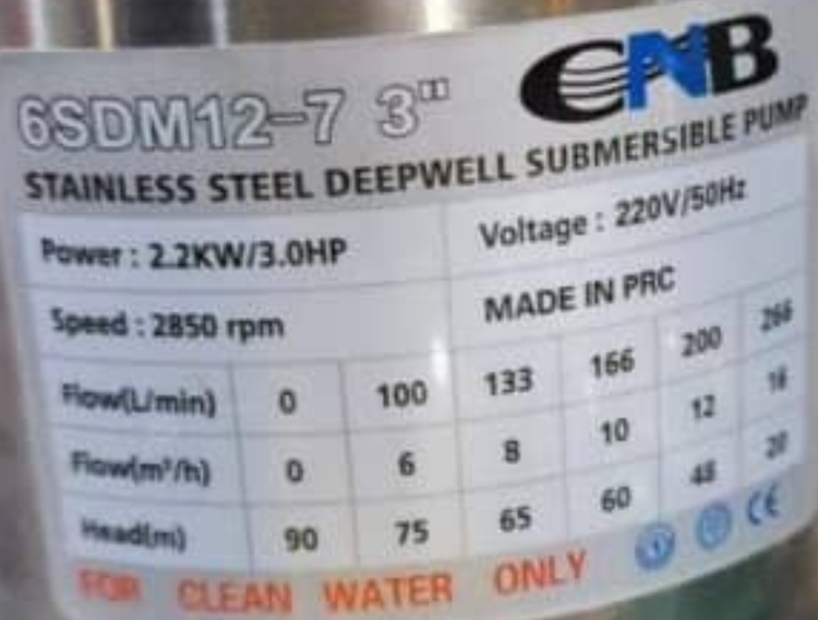 حداکثر آبدهی (مترمکعب درساعت): 12
