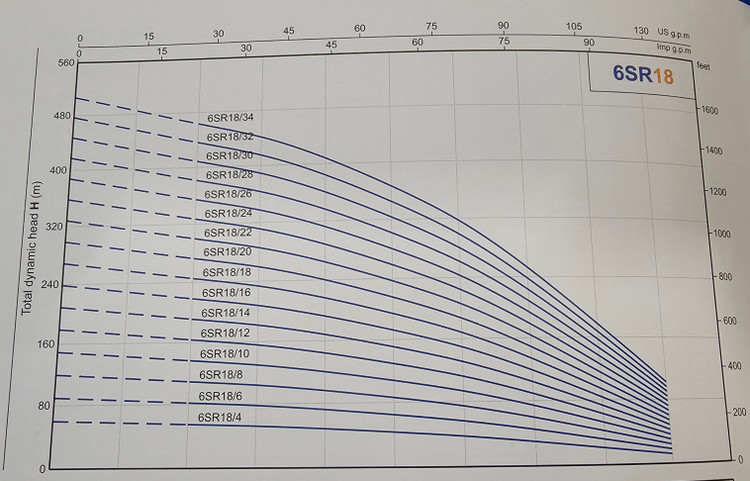 حداکثر آبدهی در ارتفاع ۳۶ متری: ۴۵۰ لیتر در دقیقه