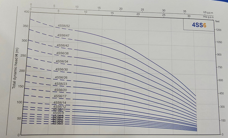 حداکثر آبدهی در ارتفاع ۱۷۶ متری: ۲۰ لیتر در دقیقه
