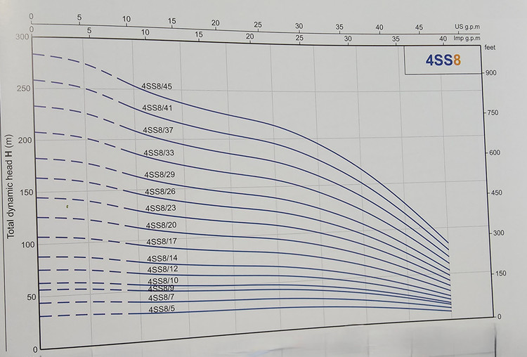 حداکثر آبدهی در ارتفاع ۱۷ متری: ۱۸۰ لیتر در دقیقه