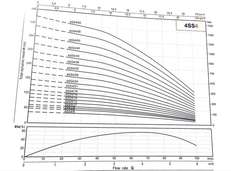 حداکثر آبدهی در ارتفاع ۷۳ متری: ۱۰۰ لیتر در دقیقه