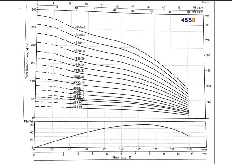حداکثر آبدهی در ارتفاع ۴۴ متری: ۱۸۰ لیتر در دقیقه
