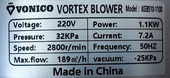 الکترو پمپ هواده ونیکو 1/5 اسب 1.1 کیلووات تکفاز مدل VONICO - KGB510-1100 | ساید چنل ( بلوئر ) تک فاز یک و نیم اسب