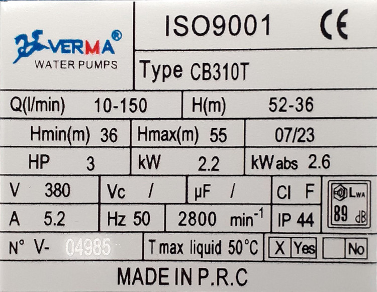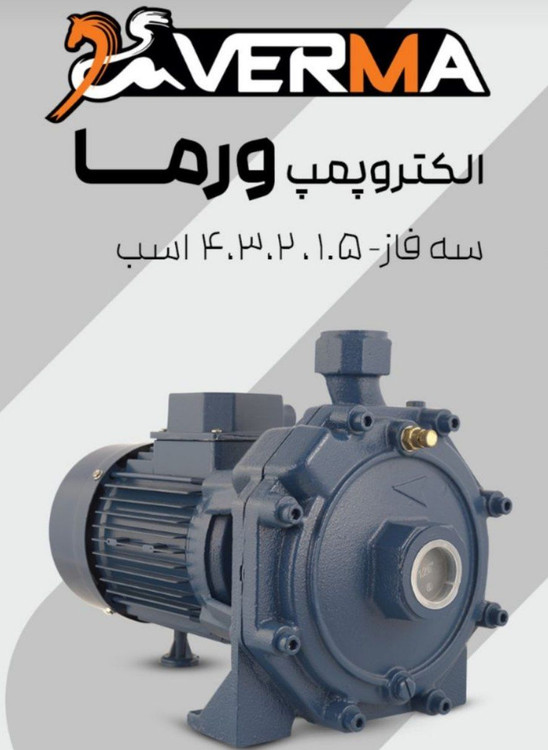 الکتروپمپ خانگی ۳ اسب ۲ پروانه ورما سه فاز مدل CB310T | پمپ سانتریفیوژ آتشنشانی و اطفای حریق دو پروانه