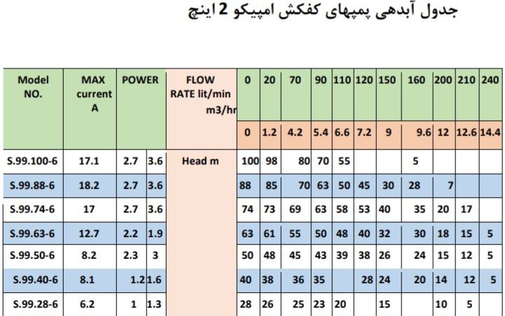 حداکثر آبدهی ( لیتر در دقیقه )