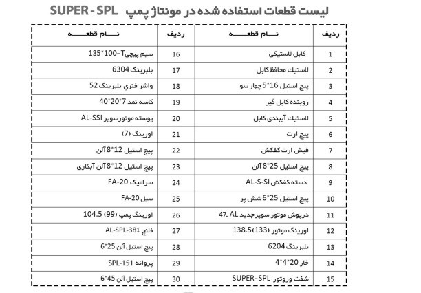 ⇐ کلیه پمپ های اسپیکو دارای یک سریال مشخص میباشند که شماره شناسایی پمپ محسوب می گردد که بر روی بدنه حکاکی شده است.