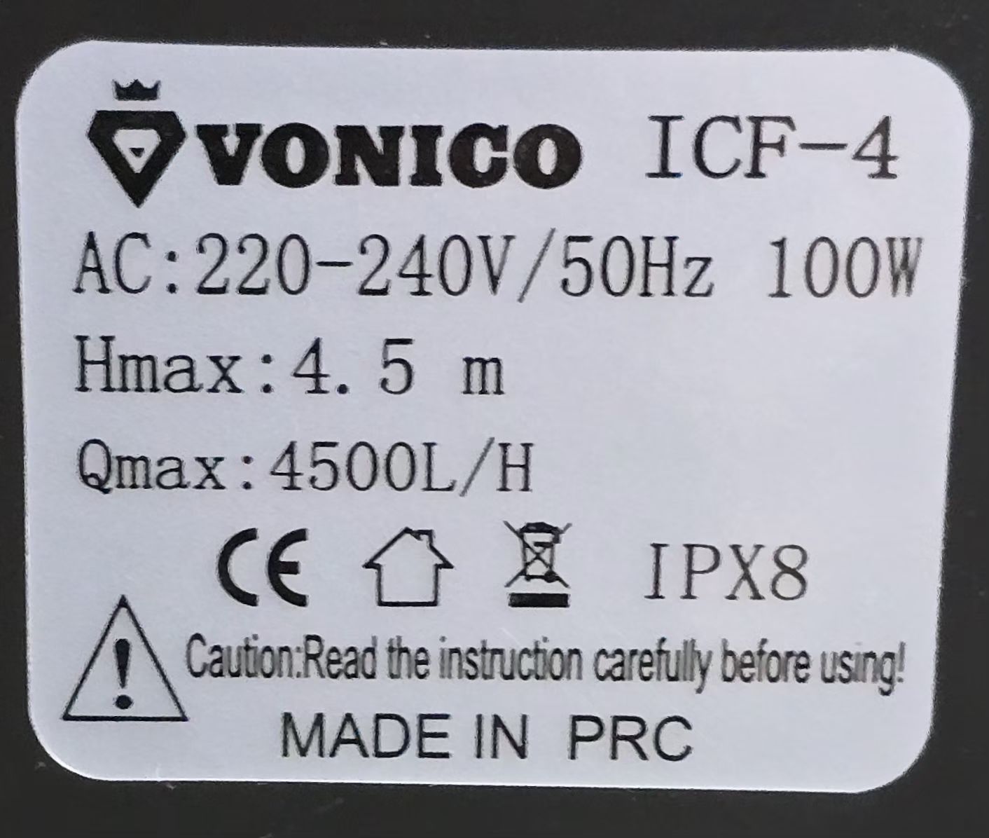 آبنما ونیکو 4/5 متری 100 وات مدل VONICO-ICF-4