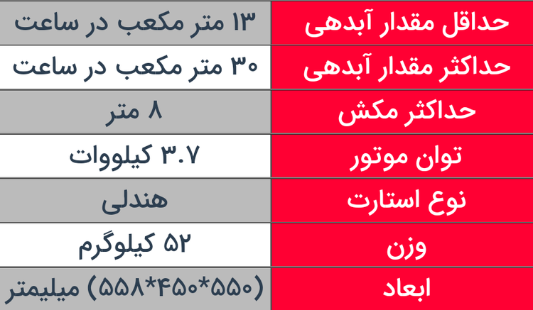 از این موتور برای انتقال آب تمیز و کثیف میتوان بهره برد و محدودیتی در این زمینه ندارد.