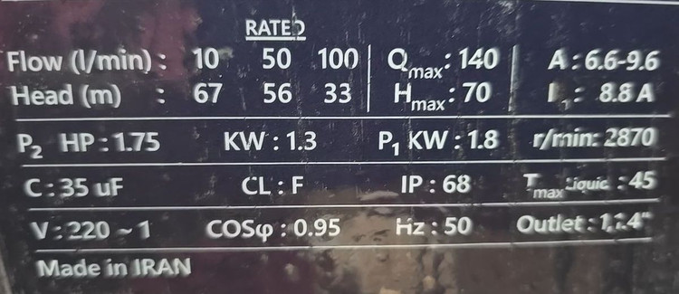 💫اطلاعات پلاك محصول به صورت واقعي بوده و عملكرد كليه پمپ ها مطابق با استاندارد ISO9906 ضمانت ميشود