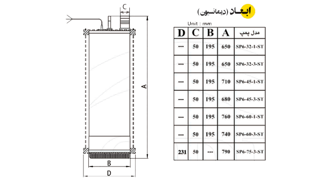 👈 از خصوصیات بارز پمپ های SP انتقال آب از قسمت فوقانی پمپ و دارا بودن حداکثر قطر خارجی ۱۹۵ میلیمتر است که میتواند برای انتقال از چاه های حفاری شده با قطر ۸ اینچ به بالا مورد استفاده قرار گیرد.