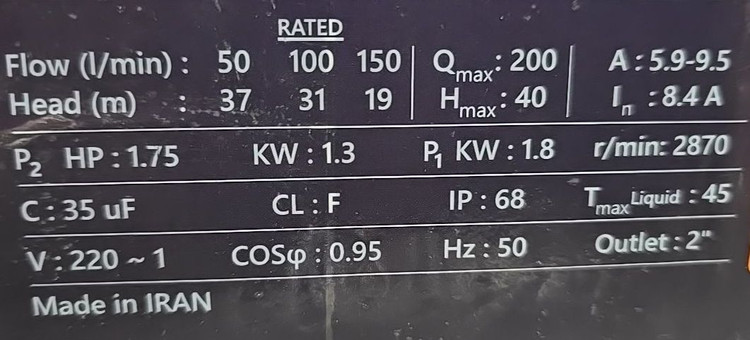 💫اطلاعات پلاك محصول به صورت واقعي بوده و عملكرد كليه پمپ ها مطابق با استاندارد ISO9906 ضمانت ميشود