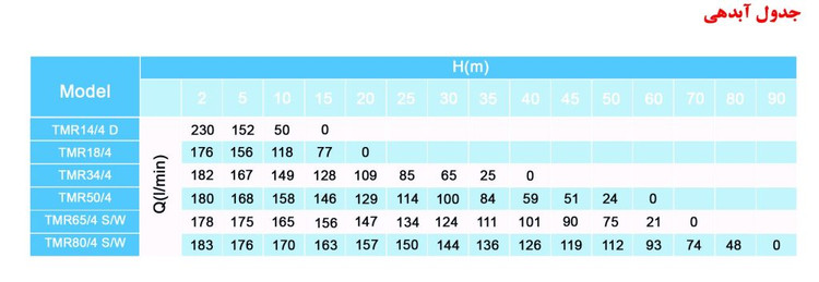 پمپ کفکش توان تک ۸۰ متری ۱.۱/۴ اینچ (لوله4) ۳ فاز مدل TMR80.4.3PH