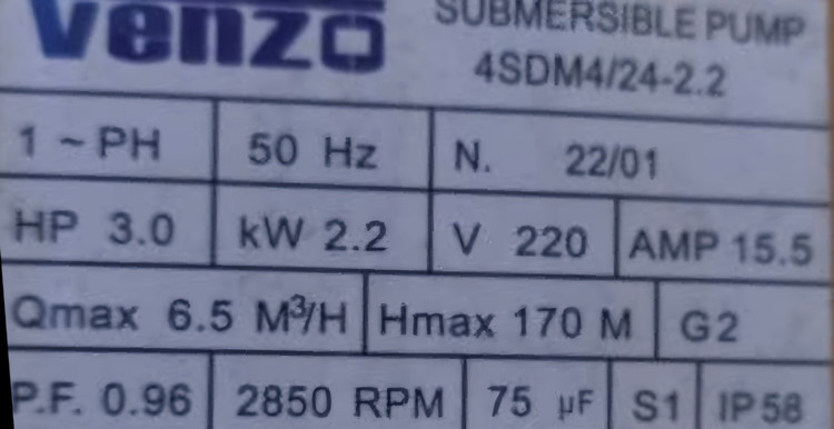 حداکثر آبدهی (مترمکعب درساعت): ۶٫۹