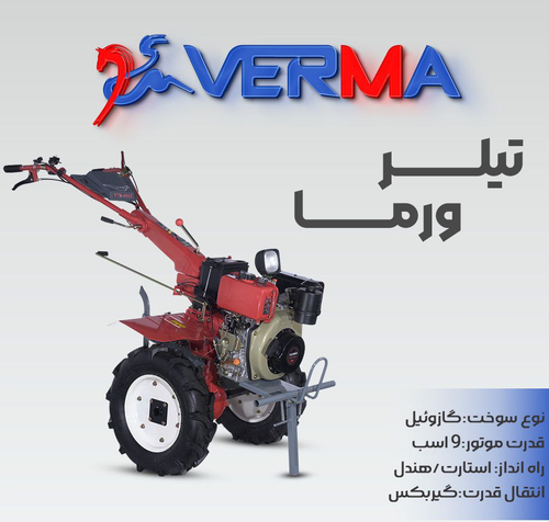 تیلر گیربکسی ۹ اسب دیزلی ورما VERMA مدل VTM-1350E | کولتیواتور شخم زن گازوییلی استارتیتماس بگیرید